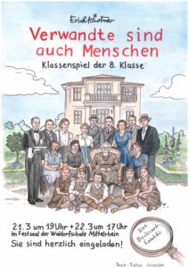 Die Aufführungen des Theaterstücks „Verwandte sind auch Menschen“ der 8. Klasse finden am Samstag, dem 21. März, um 19 Uhr, und am Sonntag, dem 22. März, um 17 Uhr, im